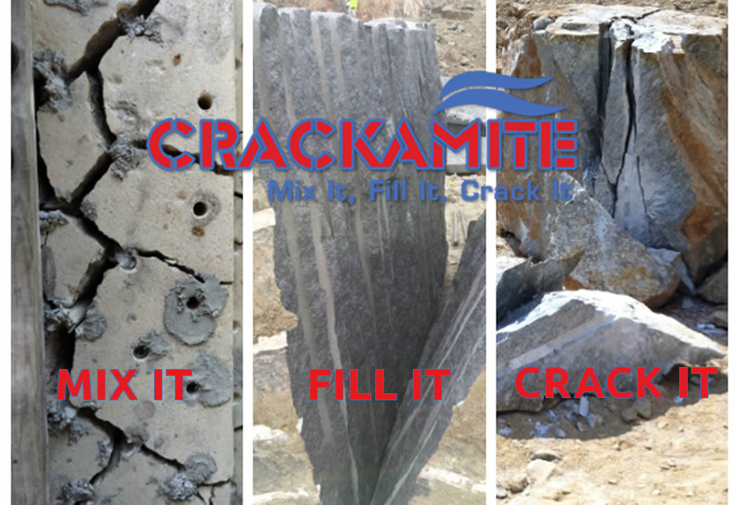 Using Crackamite is a simple process in which a slurry mixture of Crackamite powder and water is poured into the drill holes. Over the next few hours the slurry expands, cracking the rock in a pattern.